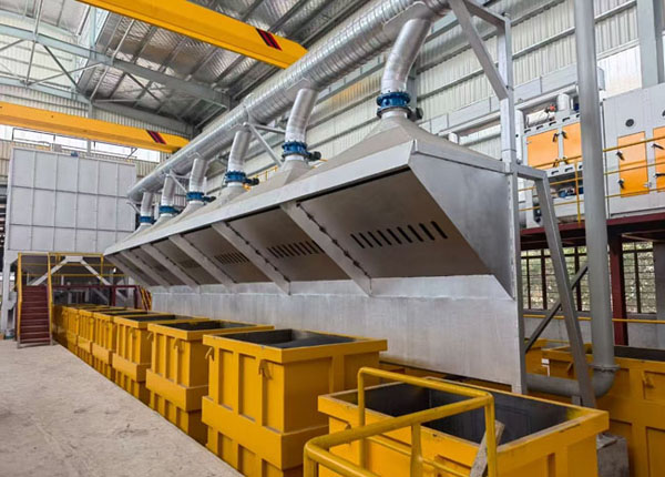 在建河南立德金屬材料科技有限公司3工位半自動消失模生產(chǎn)線、該線配置先進新型水浴滾筒、…